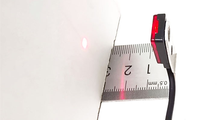 GN-045系列具有更小的光斑,檢測距離達到30mm,在此處光斑為3毫米,另有短距離款GN-045-S,檢測距離到15mm,同時具有背景抑制功能,檢測能力更強。