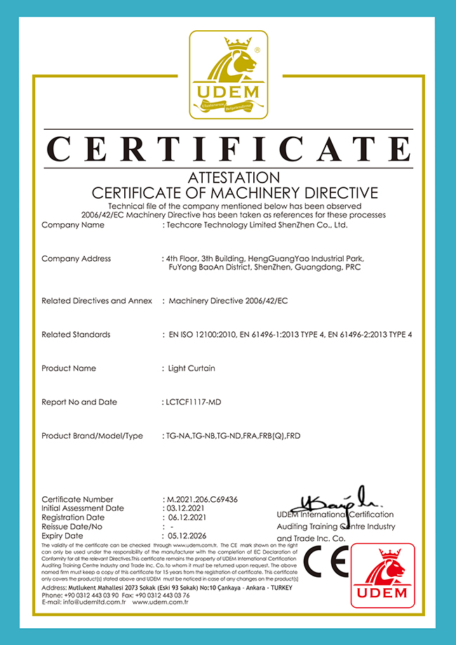 ECOTTER 安全光幕具有自檢功能,采用多個(gè)核片設(shè)計(jì)構(gòu)成,多核工作原理使產(chǎn)品在工作時(shí)有任何自身異常狀態(tài)將立即報(bào)錯(cuò),引起安全警惕。
