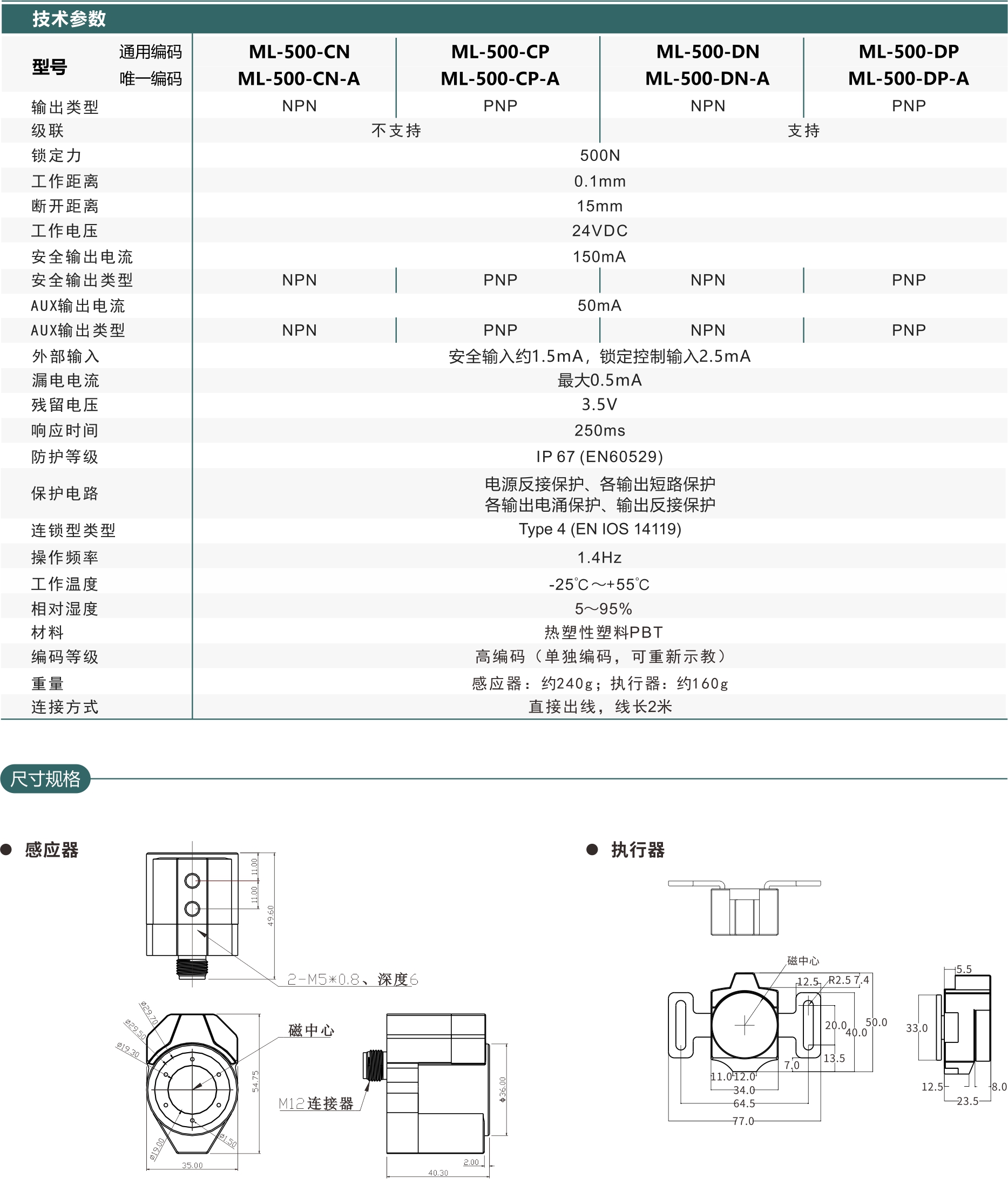 ML-500系列鎖定力可達500N,具有抗干擾、防塵防水、耐腐蝕、高負載,適用于高安全性和惡劣工況需求。